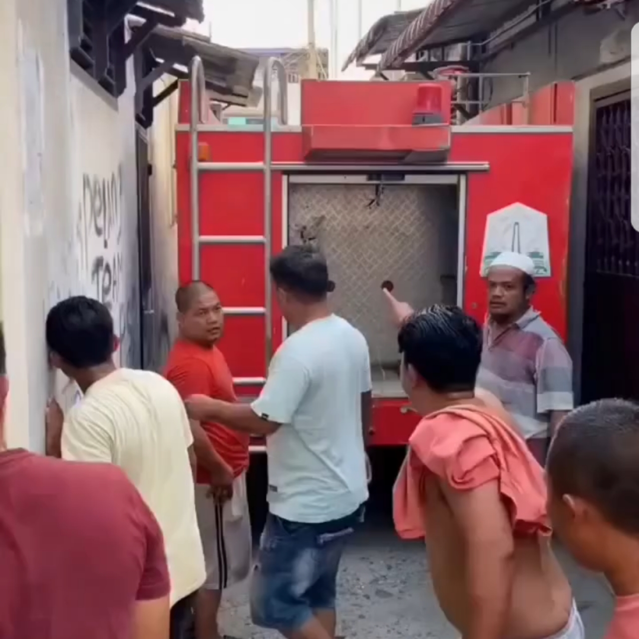 Rekaman yang viral di media sosial memperlihatkan sejumlah warga yang emosi melempari batu dan benda keras ke arah kendaraan damkar setelah warga menilai unit tersebut tidak berfungsi secara efektif dalam menyemprotkan air akibat dugaan kendala teknis pada unit tersebut. Suasana di lokasi kebakaran pun sempat berubah tegang menjelang insiden lemparan itu.