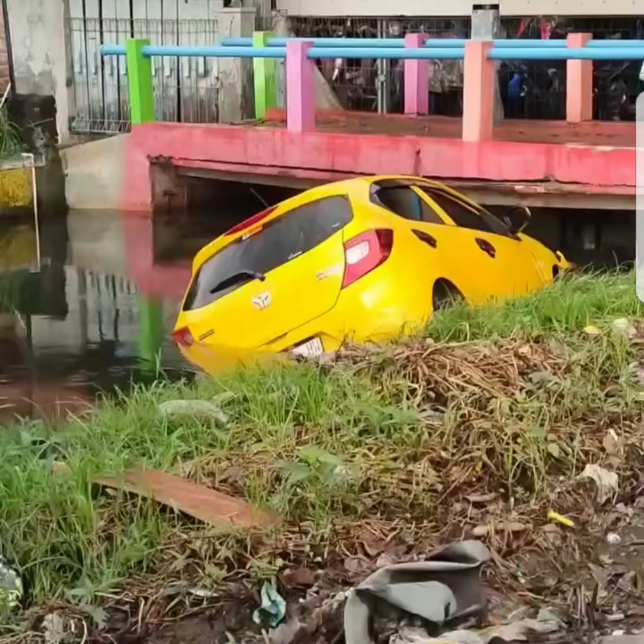 Namun pelarian itu tidak berlangsung lama. Warga yang melihat kejadian ikut mengejar mobil Honda Brio sampai melewati depan Kantor Desa Kertasari, di mana mobil tersebut terperosok dan akhirnya masuk ke dalam Kali Apor. Kejadian ini menarik perhatian warga sekitar dan petugas kepolisian yang menerima laporan.